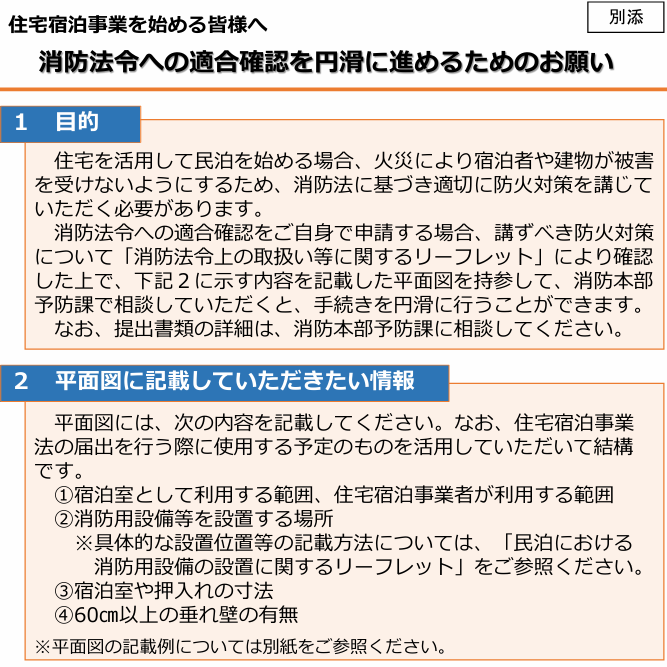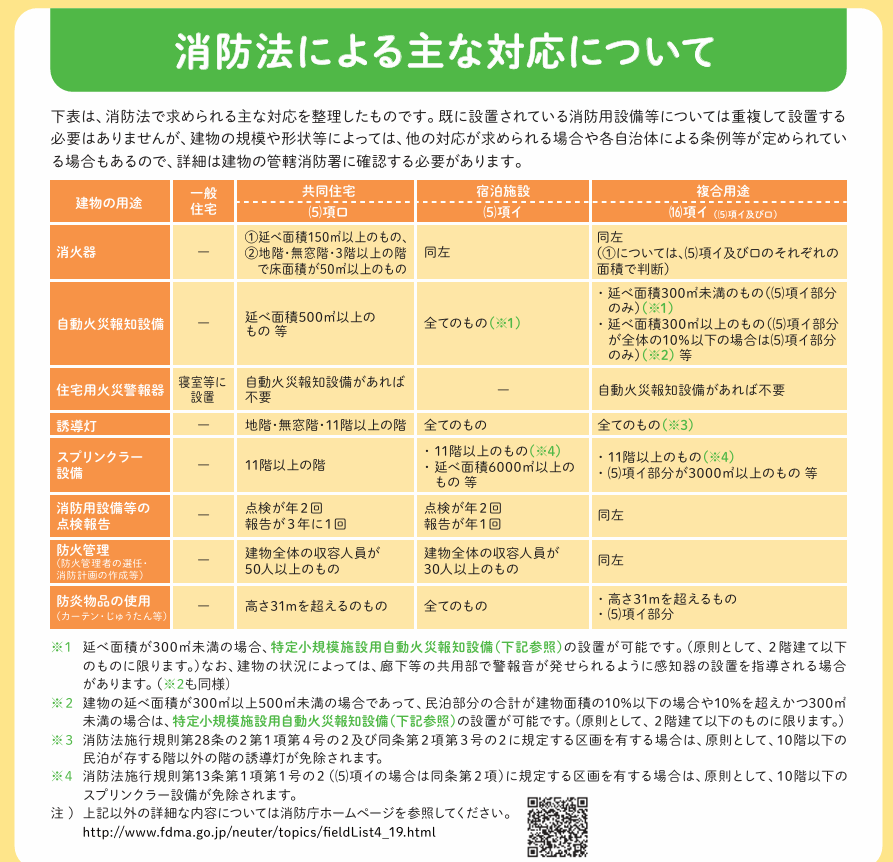 (以下は当事務所の最寄りの弘前地区消防事務組合様の資料ですので、民泊を予定している場所の管轄消防団体で確認してみてください。)