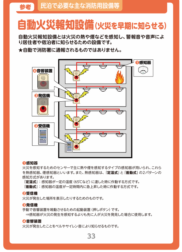 宿泊者は建物に不慣れであるため、初期火災を確実に知らせる設備として重要な役割を果たします。