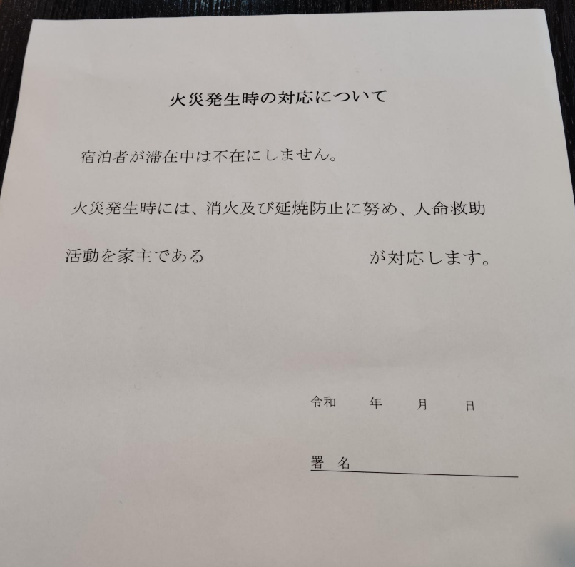・火災時対応の誓約書